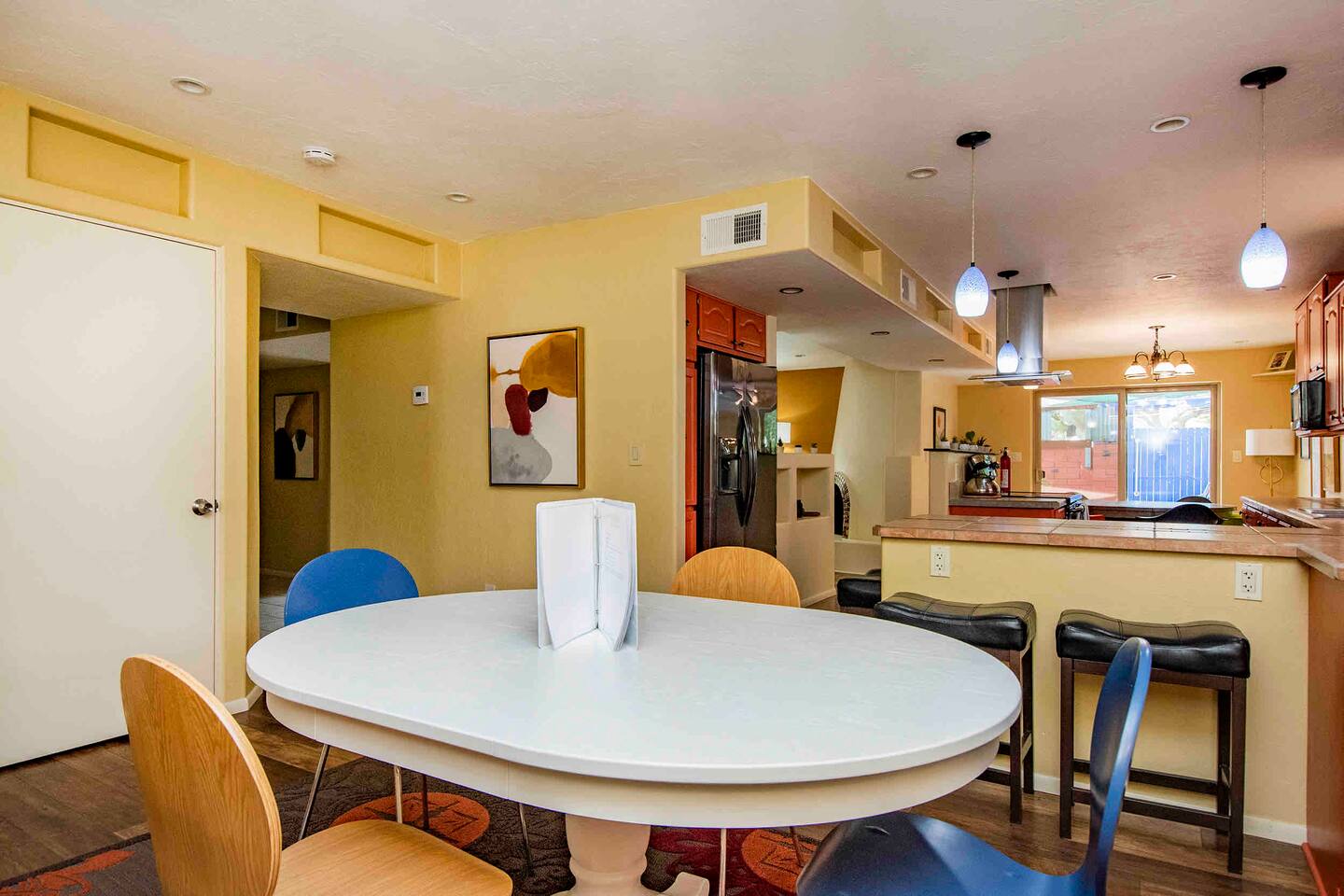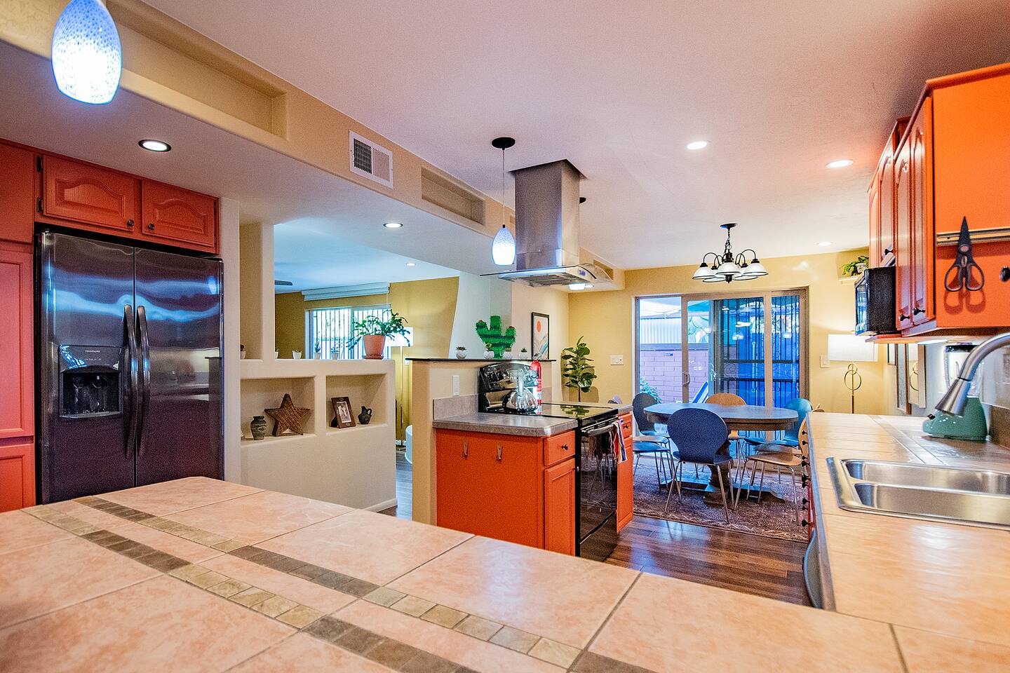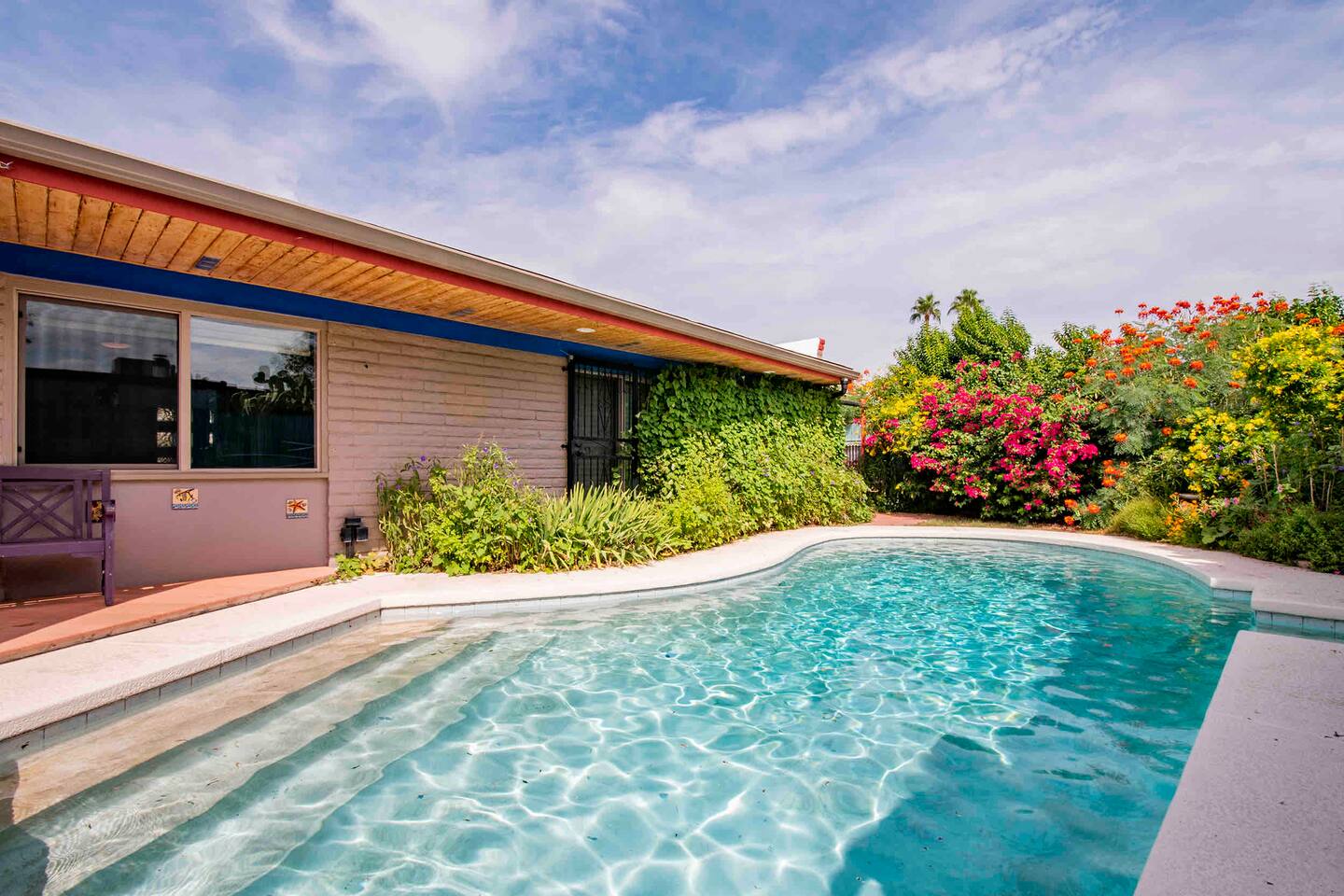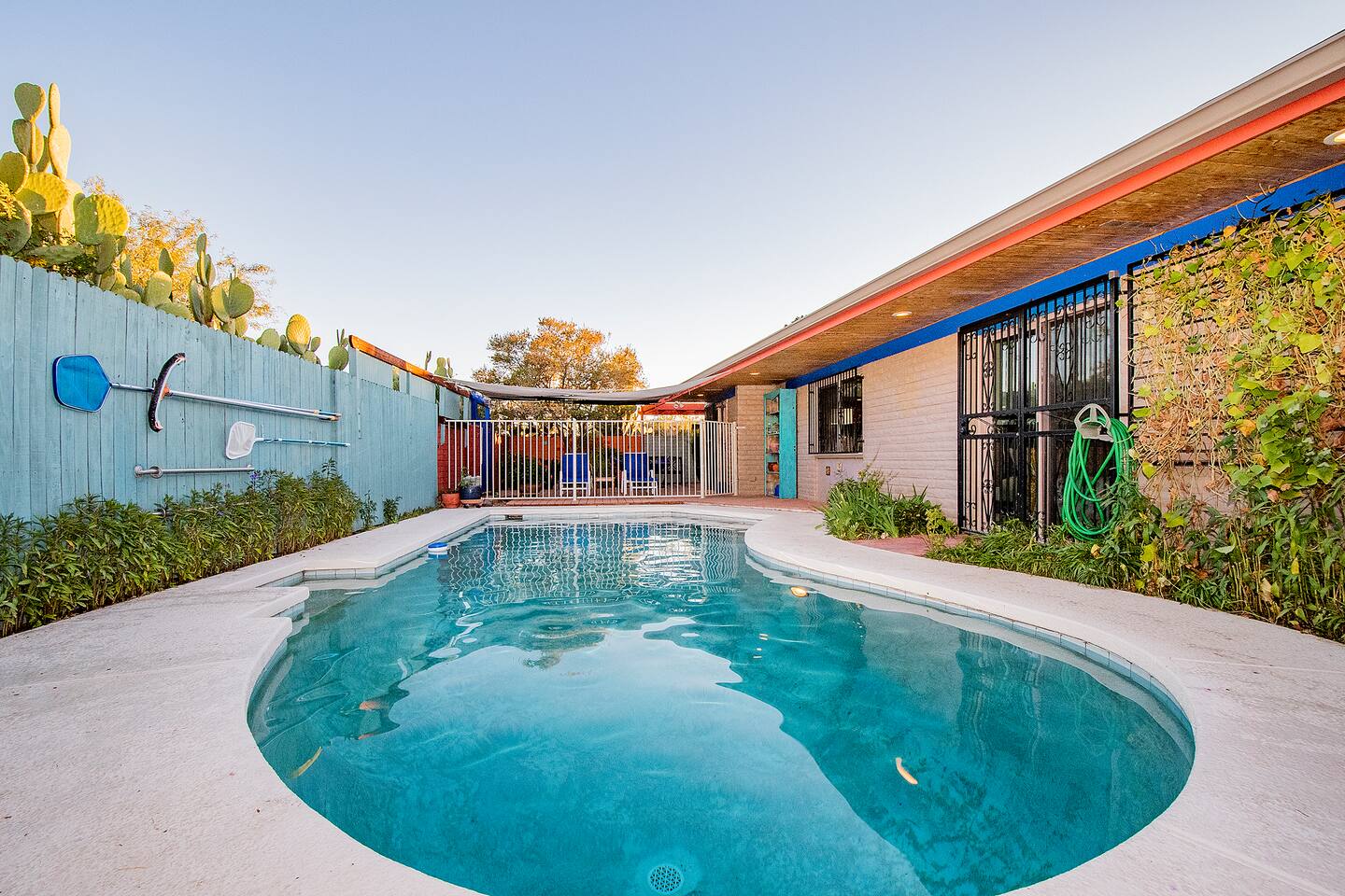 A true hidden gem located in East Tucson, this 3 bedroom 2 bathroom with seasonal pool (not heated) is perfect for a family vacation or a work trip. Enjoy the dappled sunlight of the covered patio that’s nothing short of a lush oasis. Inside you’ll find that the cheerful and colorful space has recently been outfitted with brand new everything - with your comfort in mind. Close to shopping, golfing, playground, the Loop, Saguaro National Park East - whatever you’re needs - you’ll be SET!