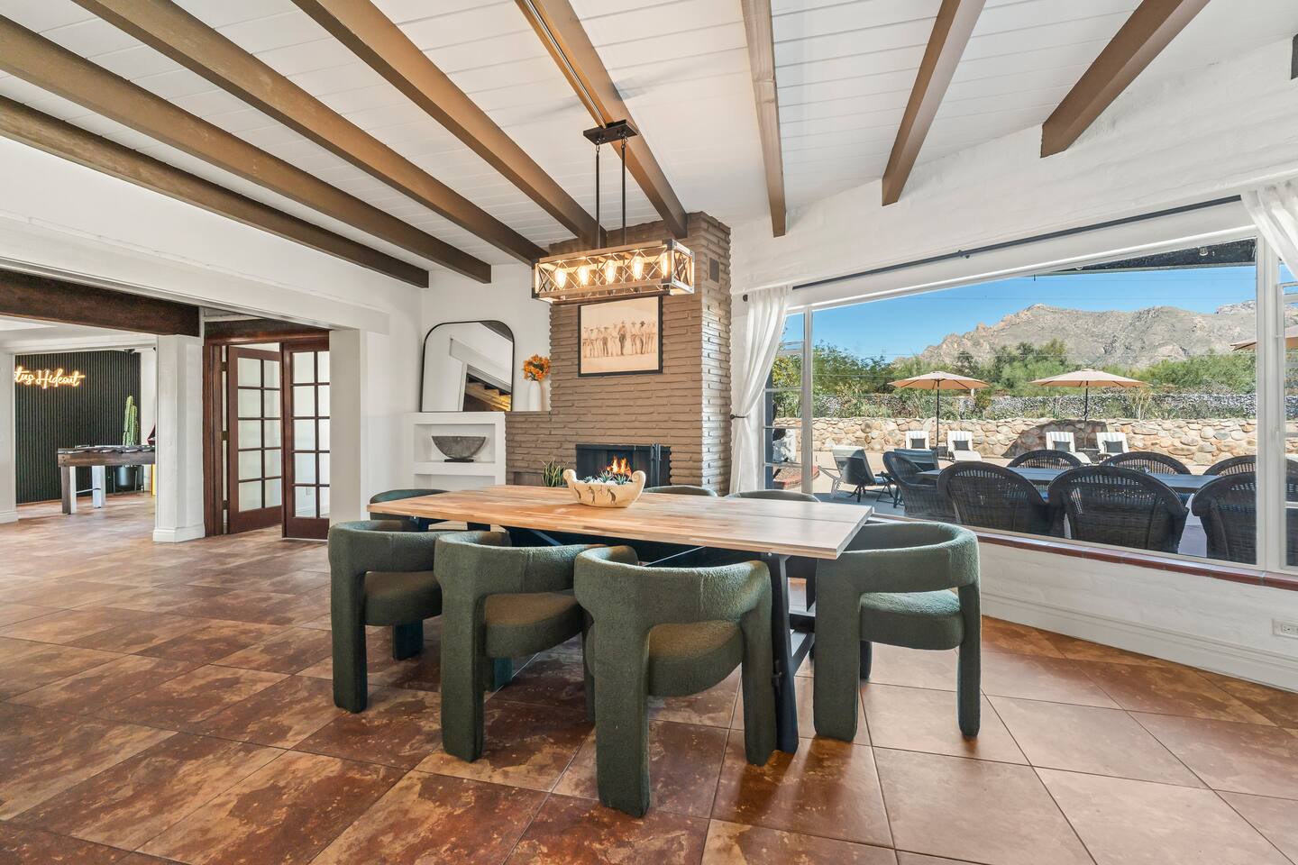 Pool may be heated for an additional $100/night. Hot tub is always complementary! Standout features: ALL brand new furnishings, bedding, and household items. Arcade games and fuseball table Record player Dedicated workspae Indoor fireplaces Putting green/ping pong table/giant connect 4 Fire pits Tons of backyard and pool furniture Outdoor shower Ample covered porch spaces Propane BBQ Grill Fully stocked kitchen and multiple dining tables Pack-and-plays/high chairs Breathtaking mountain views And so much more!