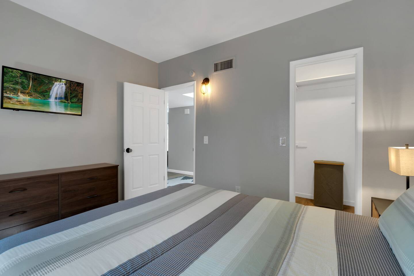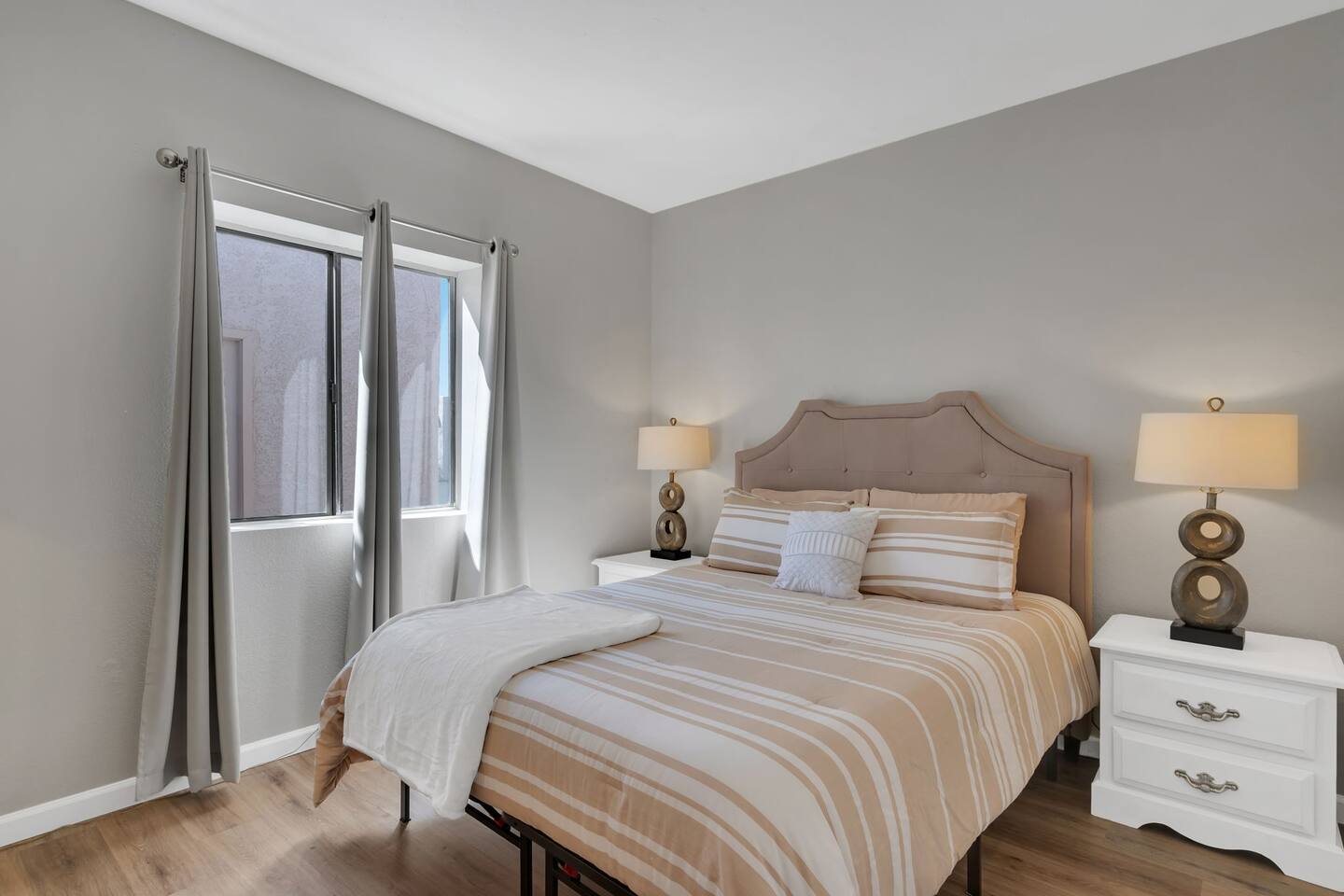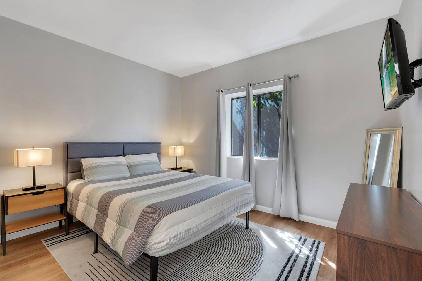 ** Garage space for up to - two standard sedans or a sedan and a standard truck. Tall or long vehicles will not fit and need to park by the pool for the exta fee of $20 for up to 10 days, or $45 for one month. *Fast Wifi *Dedicated workspace *Shaded garage for up two 2 vehicles *Private patio *Smart TV *Drip coffee maker, microwave, rice cooker *In unit washer and dryer *Community Pool