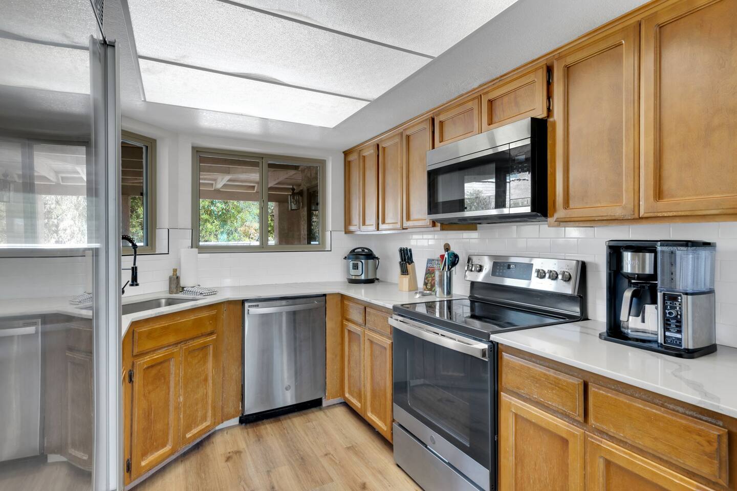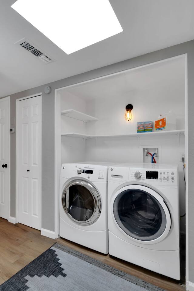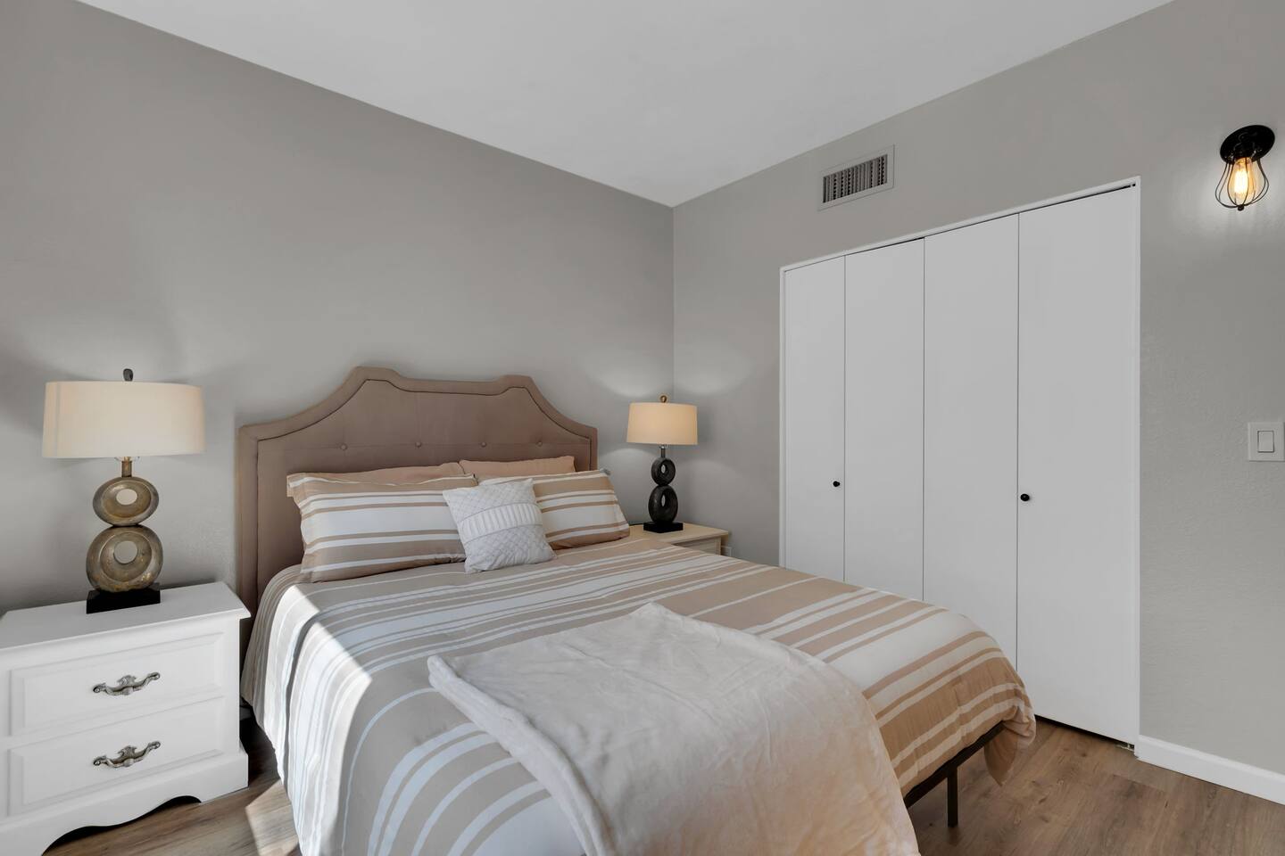 ** Garage space for up to - two standard sedans or a sedan and a standard truck. Tall or long vehicles will not fit and need to park by the pool for the exta fee of $20 for up to 10 days, or $45 for one month. *Fast Wifi *Dedicated workspace *Shaded garage for up two 2 vehicles *Private patio *Smart TV *Drip coffee maker, microwave, rice cooker *In unit washer and dryer *Community Pool
