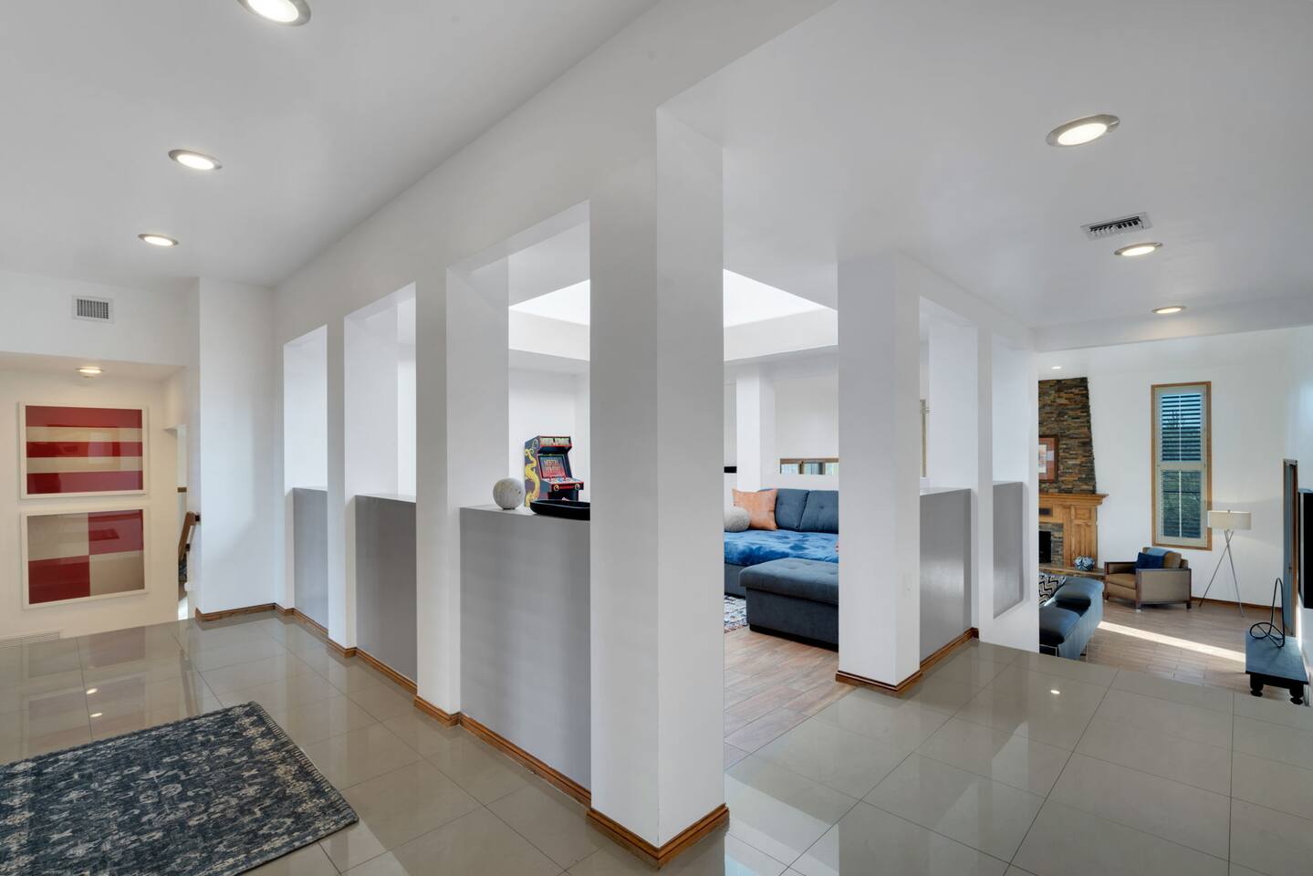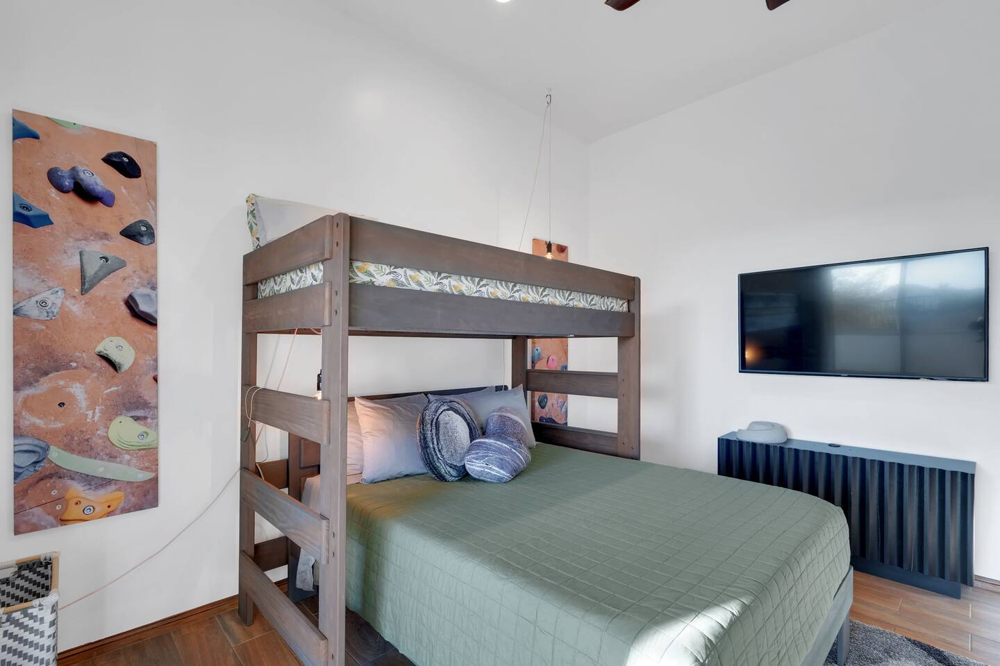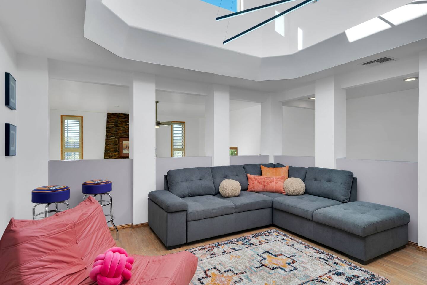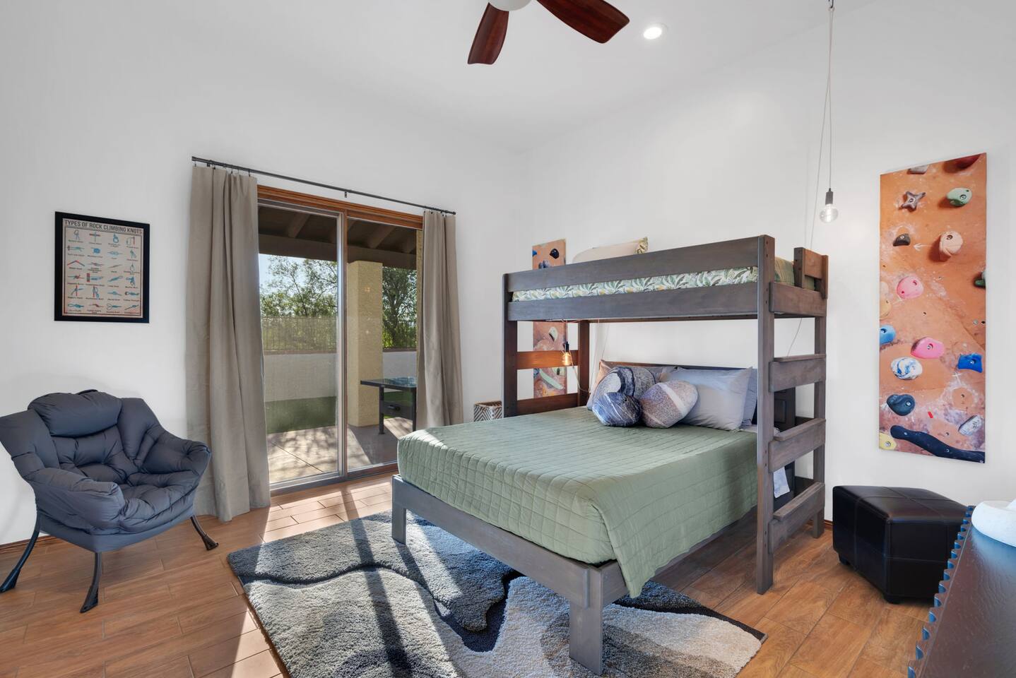 **Pool heat is an additional $100/night. We require at least 24 hours notice in order to heat-to-temp (low 80's). ** Perfect for groups and families of all ages, fun-for-all sleeps up to 11 guests. Spend time on the grounds shooting hoops or playing a game of pickleball. Lounge by the pool, or channel your inner chef and fire up the Forno Venetzia pizza oven. Outdoor dining for 8 on the patio just outside the main kitchen. A true chef's kitchen, there is ample room to cook for a crowd. Bistro seating for 9 in the sunny breakfast nook. Hang in one of two living spaces. A generous "great room" with gas fireplace and large Italian leather sectional sofa where you can stream your favorite show on the 75" TV. This room is a refreshing balance of sophistication and comfort. In the center of the home is a vibrant and whimsical hang zone, perfect for game lovers of any age. The primary suite hosts a king size bed as well as a queen sofa sleeper with an en suite bath. The "bunk-room" hosts a queen size bed with a twin bunk over the top - perfect for kiddos. A second king bedroom with an additional en suite ensure that everyone has plenty of space. Smart TV's in all bedrooms, game room, and grand living room. The couch in the game room can be converted into a queen size futon-style sleeper, and there is a pack-and-play with sheets for any infants in the group. We feel this home is perfect for up to 6-8 adults and 3-4 kids. Other highlights: *Fast Wifi *Quiet alcove with desk and chair in the primary bedroom *Chef's kitchen with double oven, gas stove, oversized fridge, large sink *Blender, toaster, microwave, Keurig OR Automatic drip coffee makers *Outdoor kitchen with sink, full sized fridge, plumbed natural gas grill, griddle, and Forno Venetzia wood-fire oven *In ground hot tub *Pool (heat is optional $100/night) *Sports court with pickleball set up *Ping pong table *Giant Jenga *Game room with classic arcade style games featuring Galaga & Ms. Pacman + cards and board games *Gas fireplace *Professional cleaning between each guest checkout All to be found in this optimally located foothills home - minutes to great restaurants, shopping, and outdoor adventure!