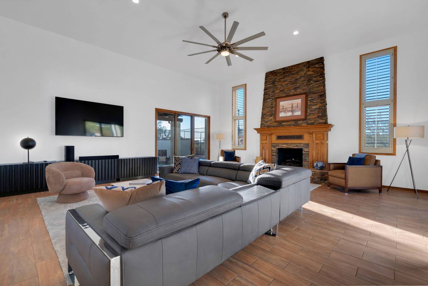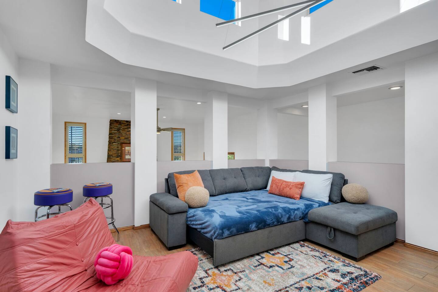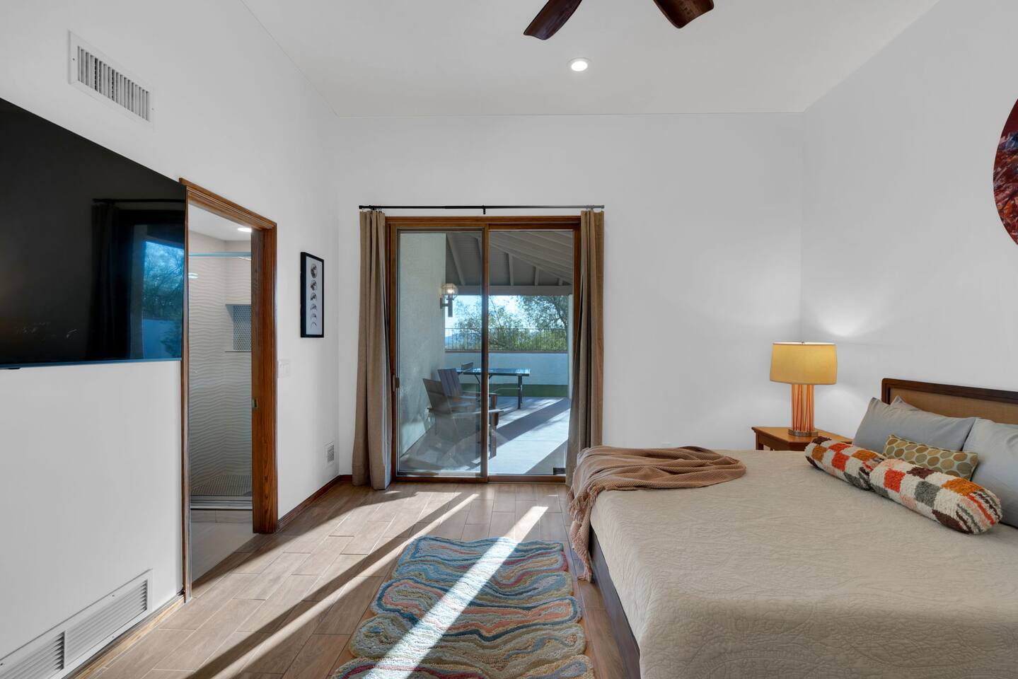 **Pool heat is an additional $100/night. We require at least 24 hours notice in order to heat-to-temp (low 80's). ** Perfect for groups and families of all ages, fun-for-all sleeps up to 11 guests. Spend time on the grounds shooting hoops or playing a game of pickleball. Lounge by the pool, or channel your inner chef and fire up the Forno Venetzia pizza oven. Outdoor dining for 8 on the patio just outside the main kitchen. A true chef's kitchen, there is ample room to cook for a crowd. Bistro seating for 9 in the sunny breakfast nook. Hang in one of two living spaces. A generous "great room" with gas fireplace and large Italian leather sectional sofa where you can stream your favorite show on the 75" TV. This room is a refreshing balance of sophistication and comfort. In the center of the home is a vibrant and whimsical hang zone, perfect for game lovers of any age. The primary suite hosts a king size bed as well as a queen sofa sleeper with an en suite bath. The "bunk-room" hosts a queen size bed with a twin bunk over the top - perfect for kiddos. A second king bedroom with an additional en suite ensure that everyone has plenty of space. Smart TV's in all bedrooms, game room, and grand living room. The couch in the game room can be converted into a queen size futon-style sleeper, and there is a pack-and-play with sheets for any infants in the group. We feel this home is perfect for up to 6-8 adults and 3-4 kids. Other highlights: *Fast Wifi *Quiet alcove with desk and chair in the primary bedroom *Chef's kitchen with double oven, gas stove, oversized fridge, large sink *Blender, toaster, microwave, Keurig OR Automatic drip coffee makers *Outdoor kitchen with sink, full sized fridge, plumbed natural gas grill, griddle, and Forno Venetzia wood-fire oven *In ground hot tub *Pool (heat is optional $100/night) *Sports court with pickleball set up *Ping pong table *Giant Jenga *Game room with classic arcade style games featuring Galaga & Ms. Pacman + cards and board games *Gas fireplace *Professional cleaning between each guest checkout All to be found in this optimally located foothills home - minutes to great restaurants, shopping, and outdoor adventure!