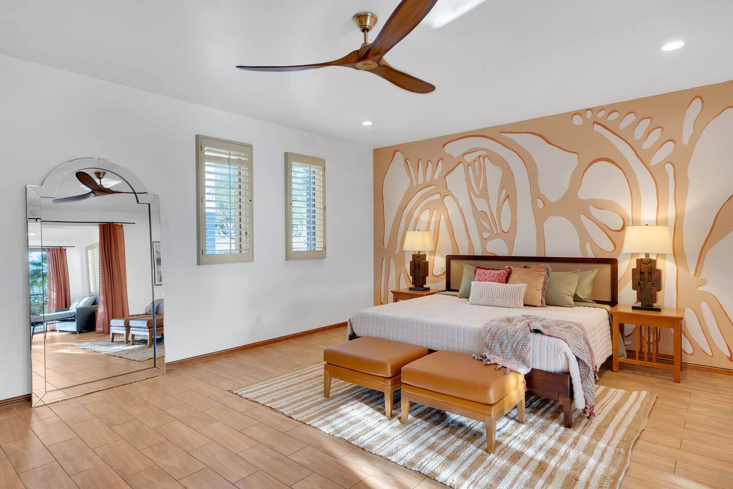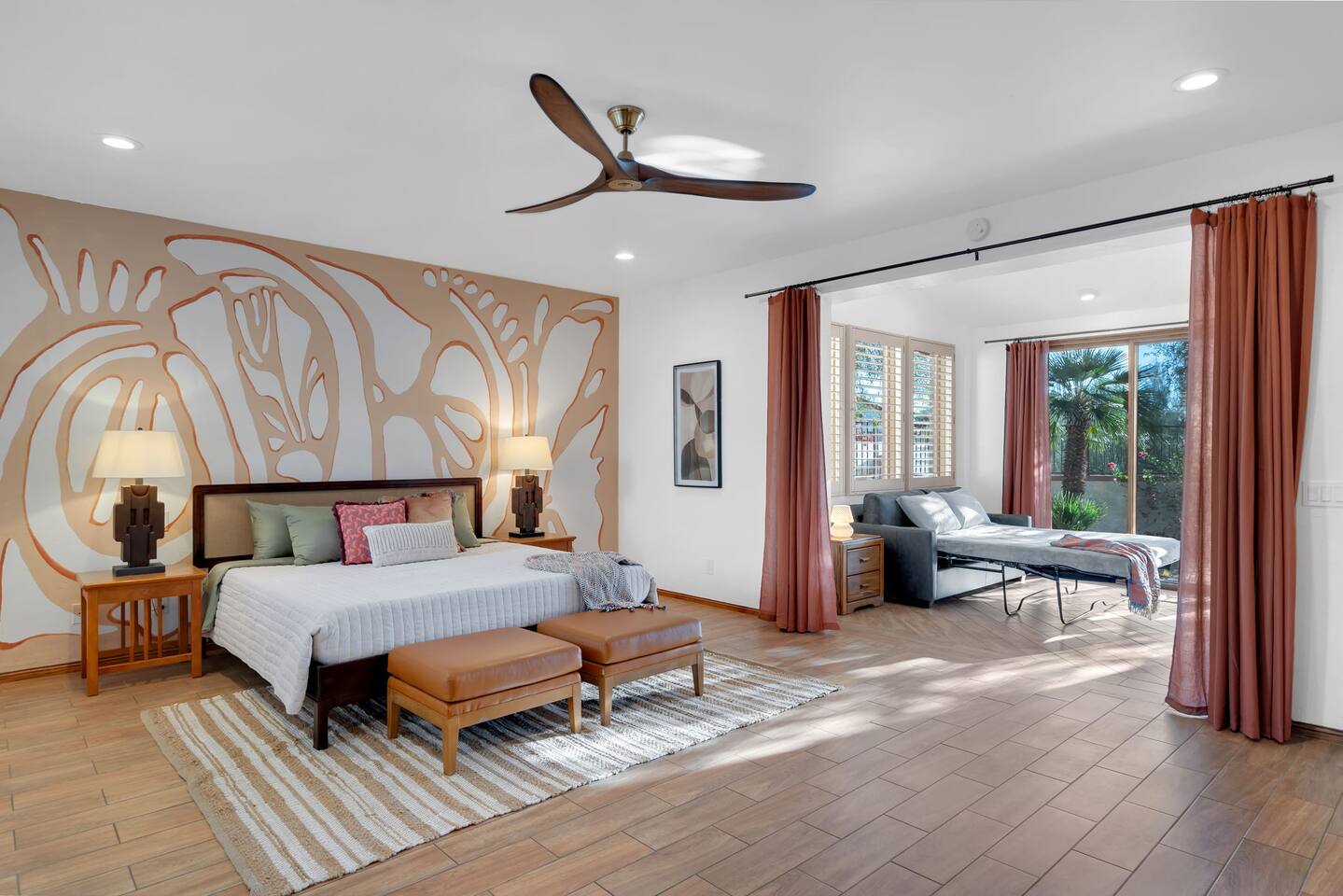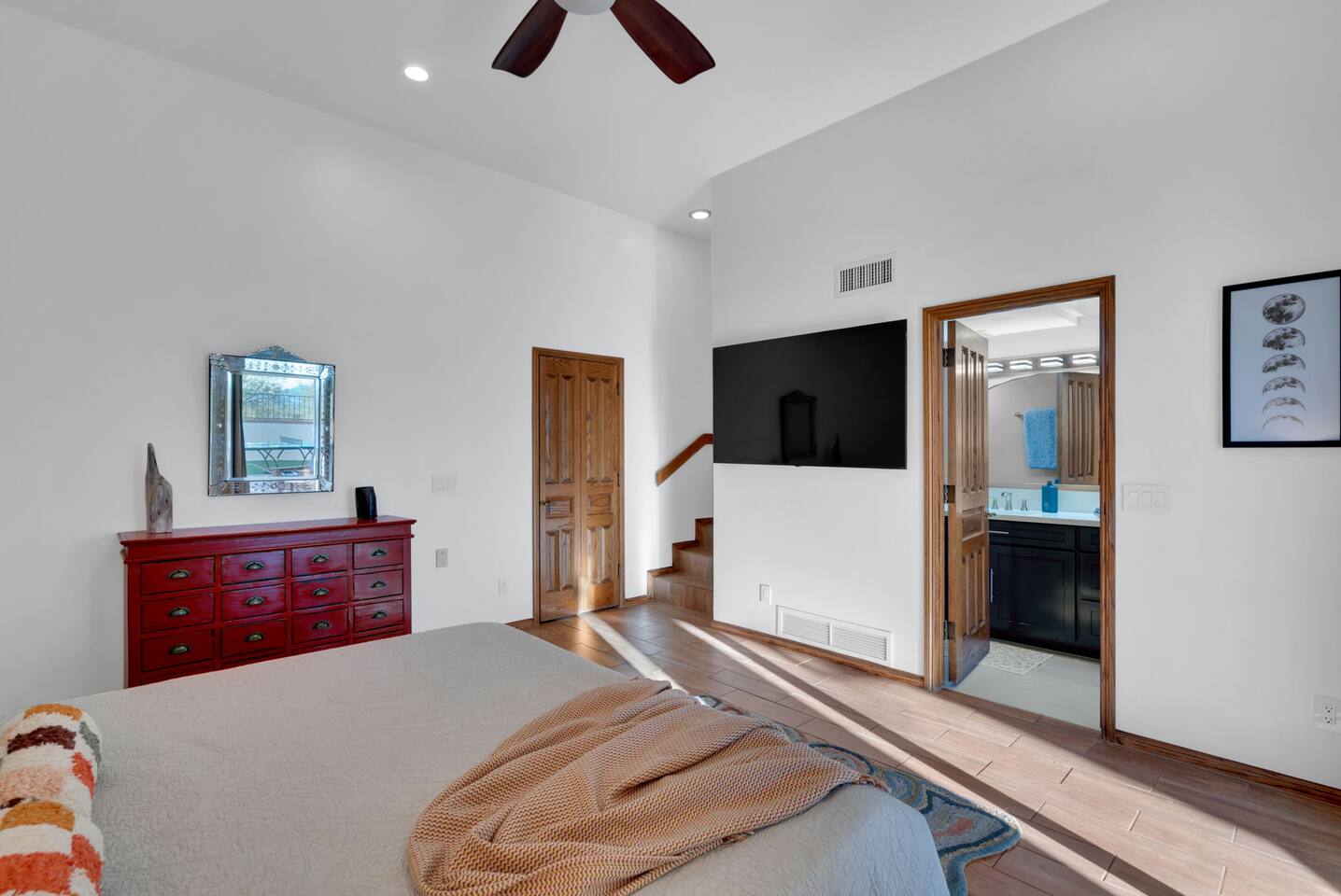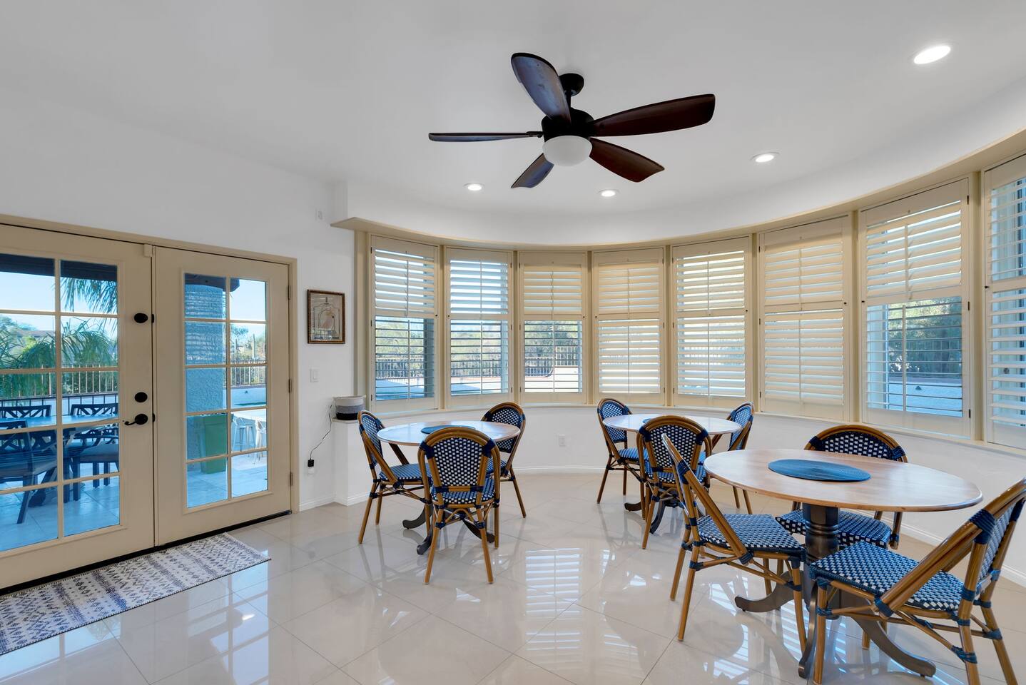 **Pool heat is an additional $100/night. We require at least 24 hours notice in order to heat-to-temp (low 80's). ** Perfect for groups and families of all ages, fun-for-all sleeps up to 11 guests. Spend time on the grounds shooting hoops or playing a game of pickleball. Lounge by the pool, or channel your inner chef and fire up the Forno Venetzia pizza oven. Outdoor dining for 8 on the patio just outside the main kitchen. A true chef's kitchen, there is ample room to cook for a crowd. Bistro seating for 9 in the sunny breakfast nook. Hang in one of two living spaces. A generous "great room" with gas fireplace and large Italian leather sectional sofa where you can stream your favorite show on the 75" TV. This room is a refreshing balance of sophistication and comfort. In the center of the home is a vibrant and whimsical hang zone, perfect for game lovers of any age. The primary suite hosts a king size bed as well as a queen sofa sleeper with an en suite bath. The "bunk-room" hosts a queen size bed with a twin bunk over the top - perfect for kiddos. A second king bedroom with an additional en suite ensure that everyone has plenty of space. Smart TV's in all bedrooms, game room, and grand living room. The couch in the game room can be converted into a queen size futon-style sleeper, and there is a pack-and-play with sheets for any infants in the group. We feel this home is perfect for up to 6-8 adults and 3-4 kids. Other highlights: *Fast Wifi *Quiet alcove with desk and chair in the primary bedroom *Chef's kitchen with double oven, gas stove, oversized fridge, large sink *Blender, toaster, microwave, Keurig OR Automatic drip coffee makers *Outdoor kitchen with sink, full sized fridge, plumbed natural gas grill, griddle, and Forno Venetzia wood-fire oven *In ground hot tub *Pool (heat is optional $100/night) *Sports court with pickleball set up *Ping pong table *Giant Jenga *Game room with classic arcade style games featuring Galaga & Ms. Pacman + cards and board games *Gas fireplace *Professional cleaning between each guest checkout All to be found in this optimally located foothills home - minutes to great restaurants, shopping, and outdoor adventure!