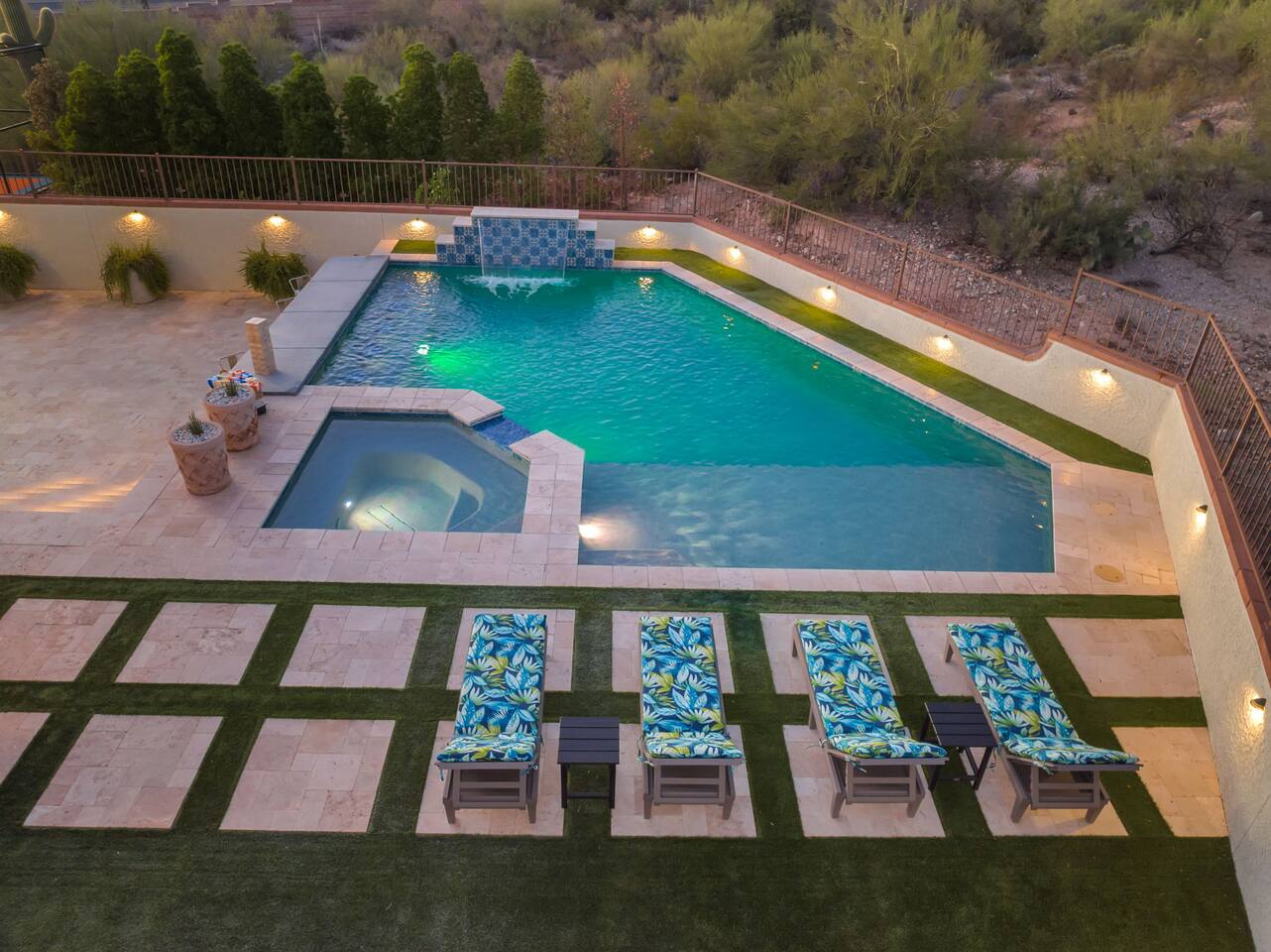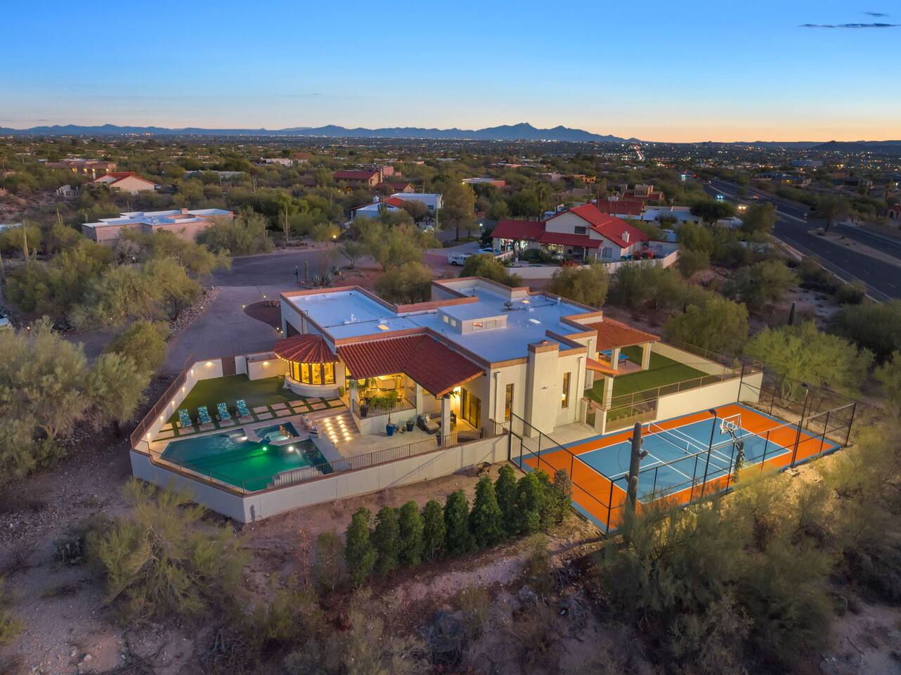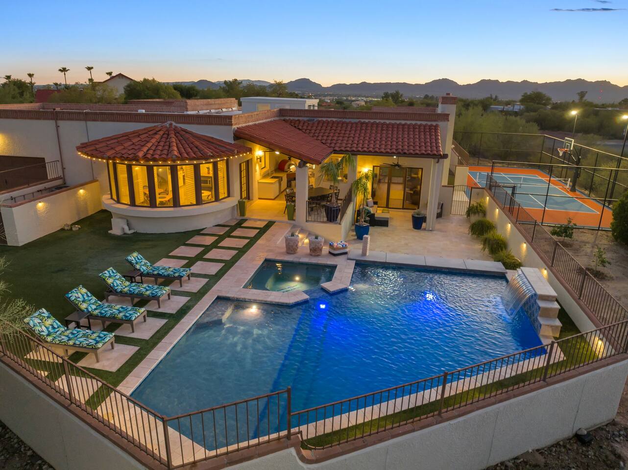 Welcome to the Catalina Foothills! Stay in style at this brand-new-everything, luxurious family home. Fun-for-all is situated on over an acre - plenty of room to spread out, make memories, relax, and have fun in the AZ sun! Your group will love the private sports court, optionally heated pool, outdoor kitchen with wood-burning pizza oven, game room, and overall lavish feel of our 3500 sq. foot home! We can't wait to welcome you!