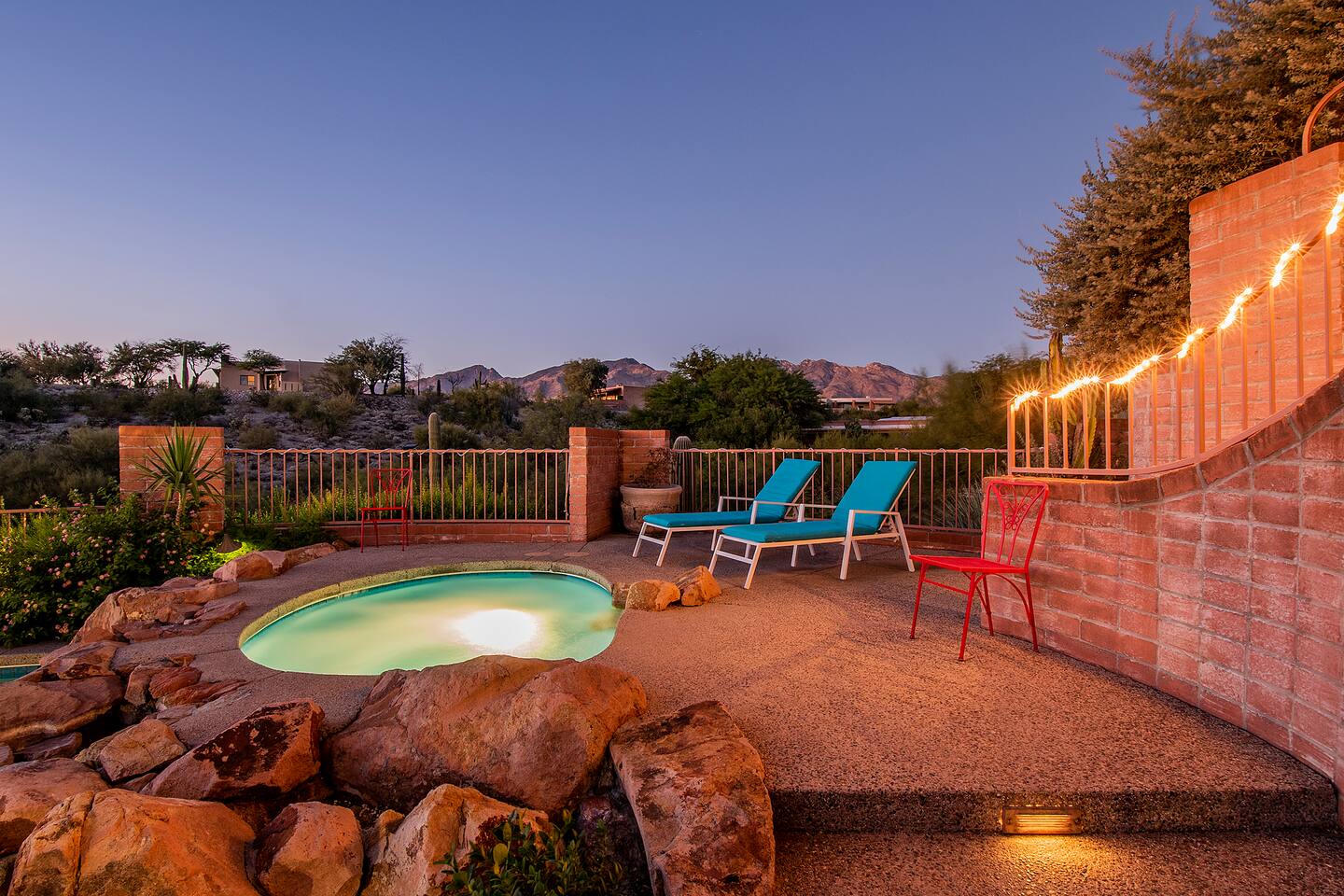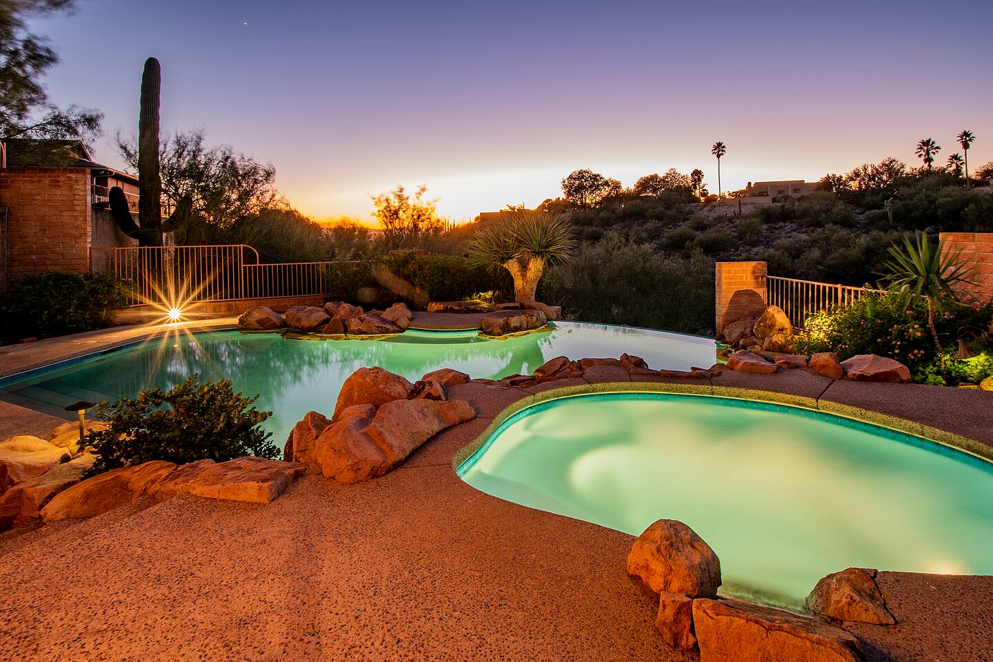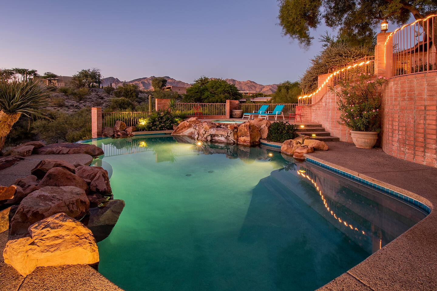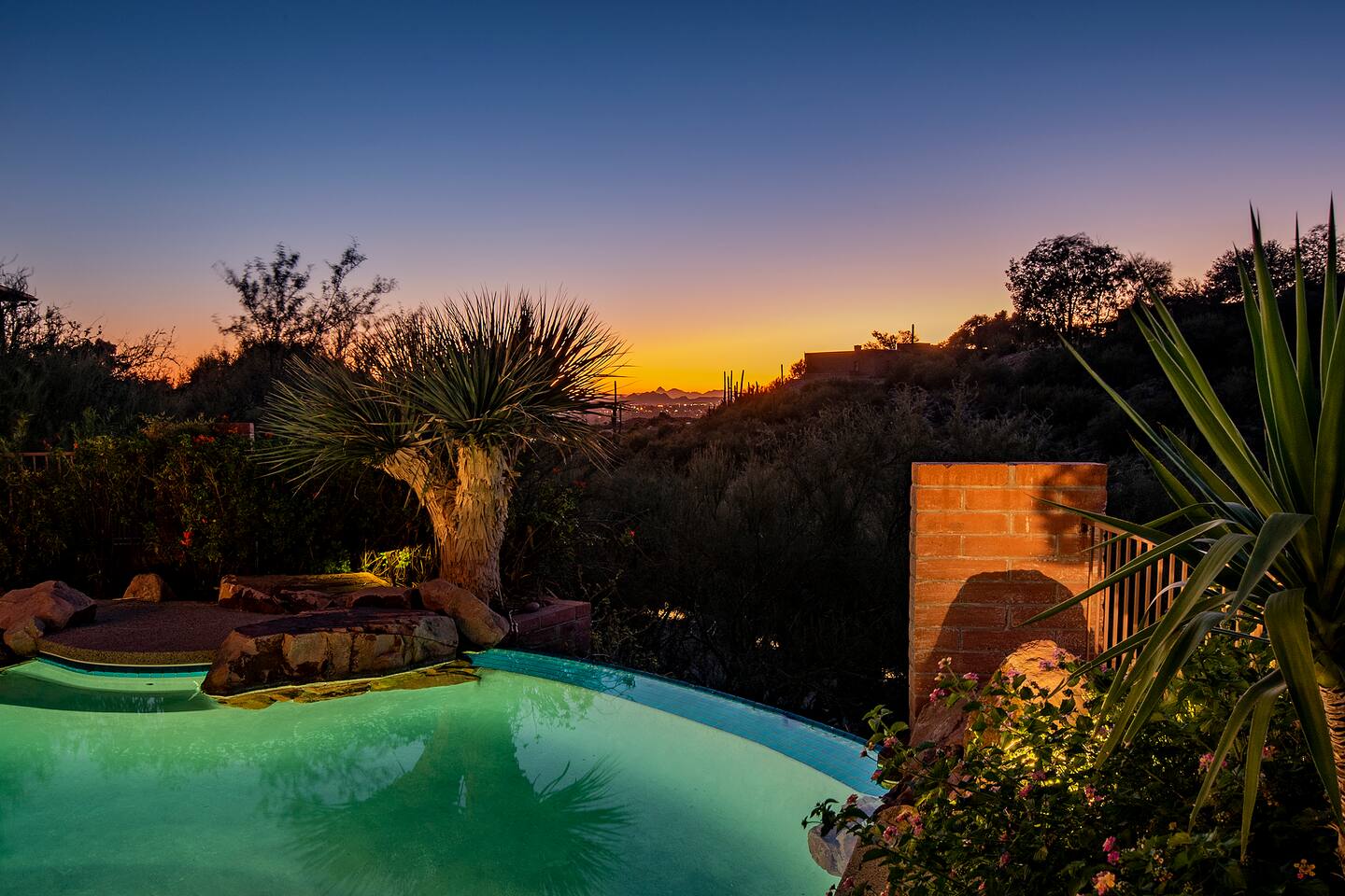 Million dollar views! This sprawling house is quietly situated on nearly an acre in the Catalina Foothills! Plenty of room for both work and play, your group will fall in love with this property. Catch a breathtaking sunset poolside, in the hammock, on a bench, or posted up at an outdoor table. Inside you can relax or work from one of two living rooms, large dining table, or private en suite desk. After sunset, you can soak the day away in the spa under the stars! *Heated pool is $100/day