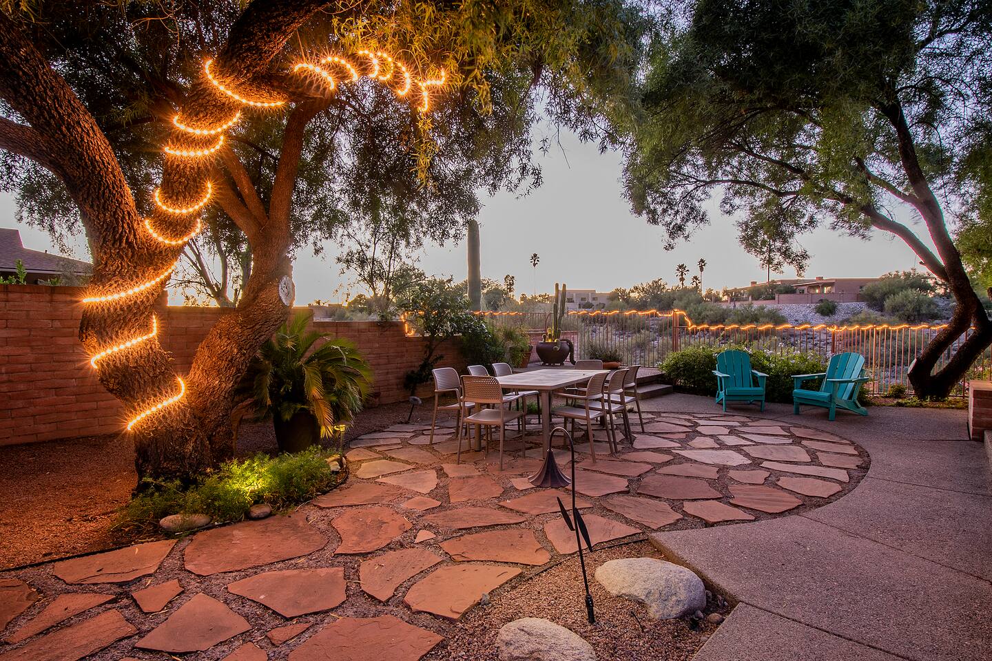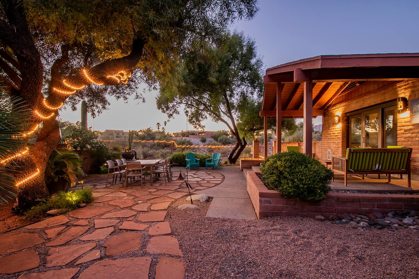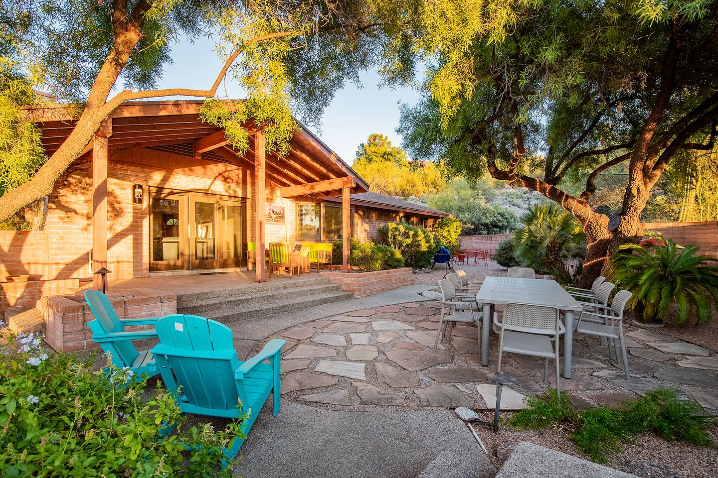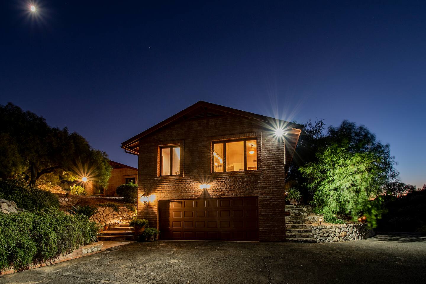 Million dollar views! This sprawling house is quietly situated on nearly an acre in the Catalina Foothills! Plenty of room for both work and play, your group will fall in love with this property. Catch a breathtaking sunset poolside, in the hammock, on a bench, or posted up at an outdoor table. Inside you can relax or work from one of two living rooms, large dining table, or private en suite desk. After sunset, you can soak the day away in the spa under the stars! *Heated pool is $100/day