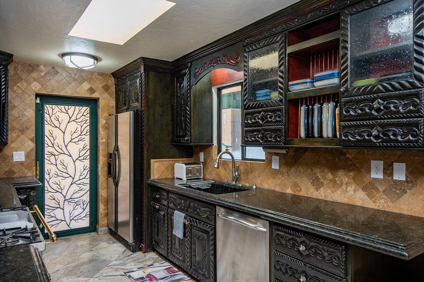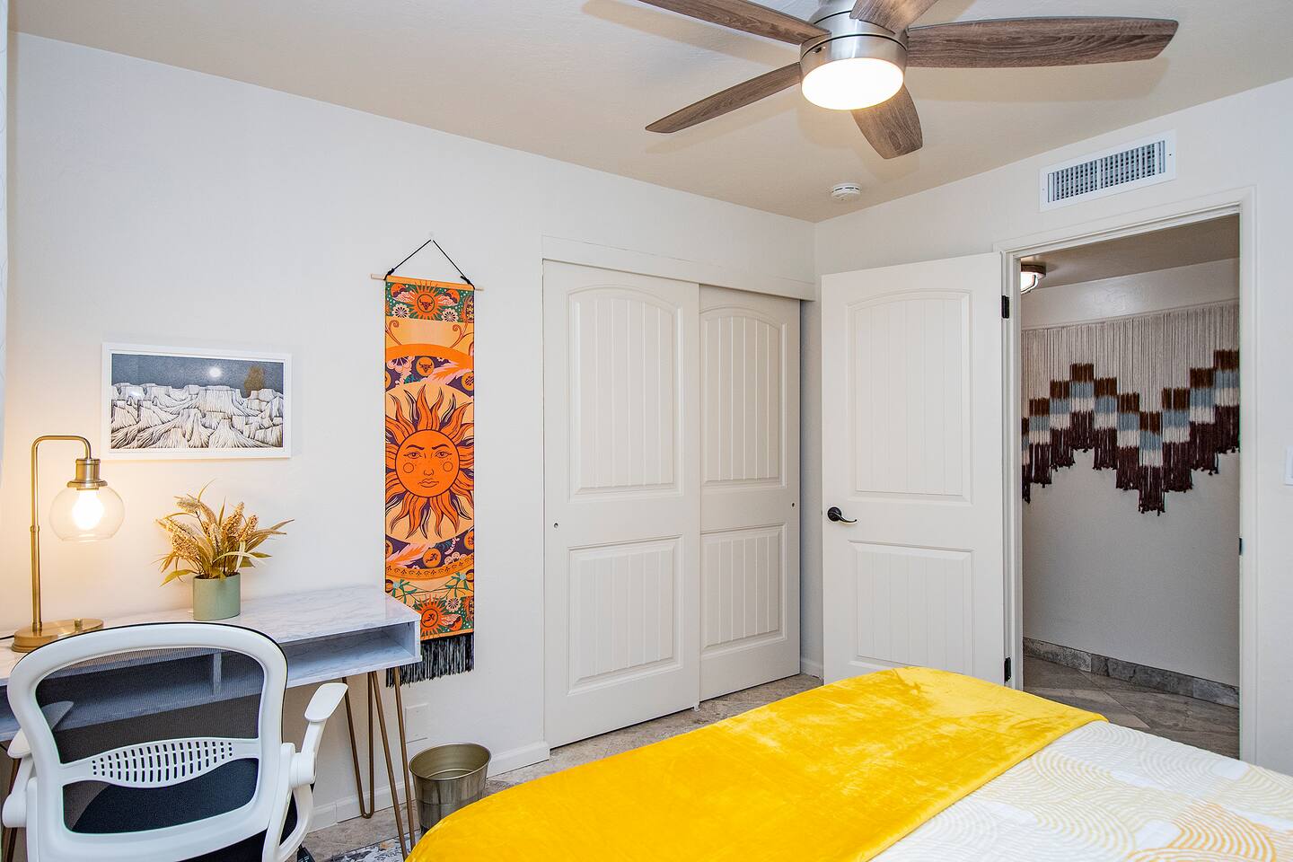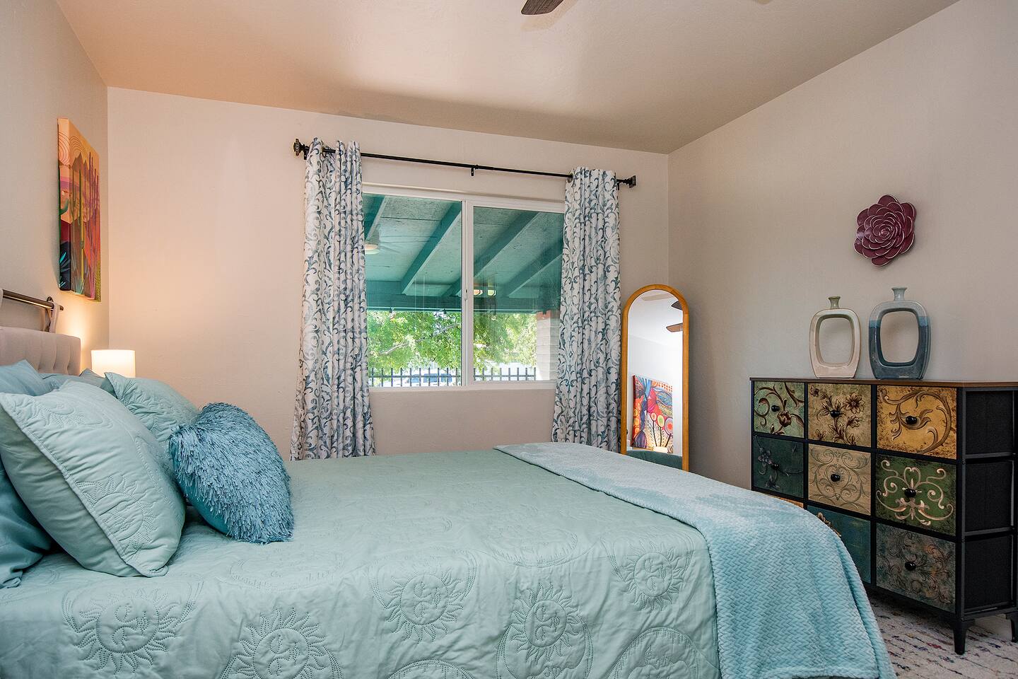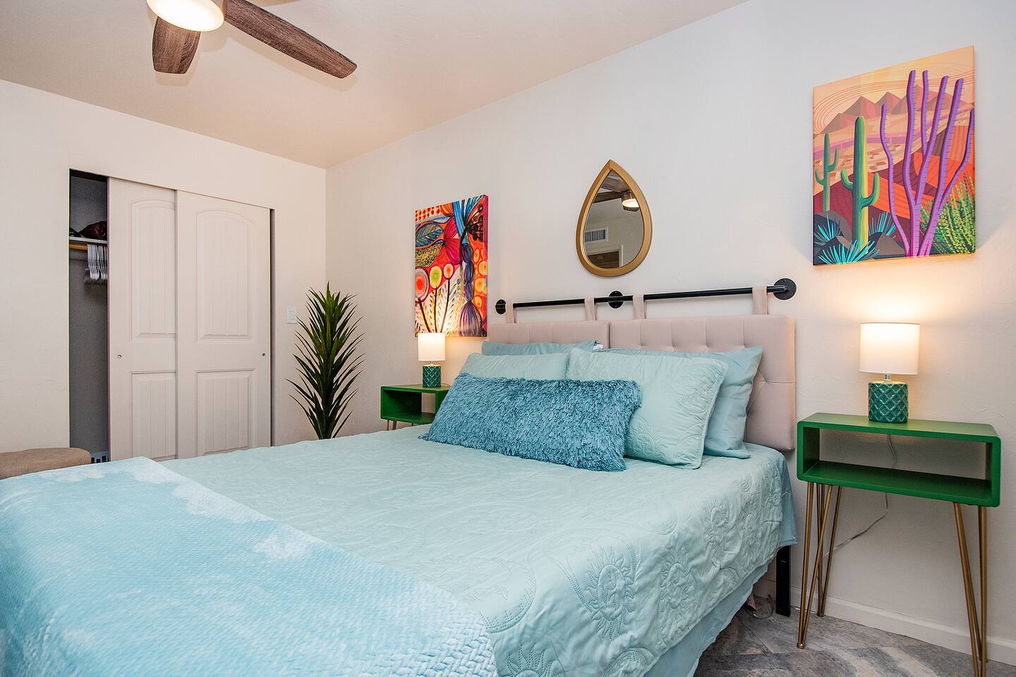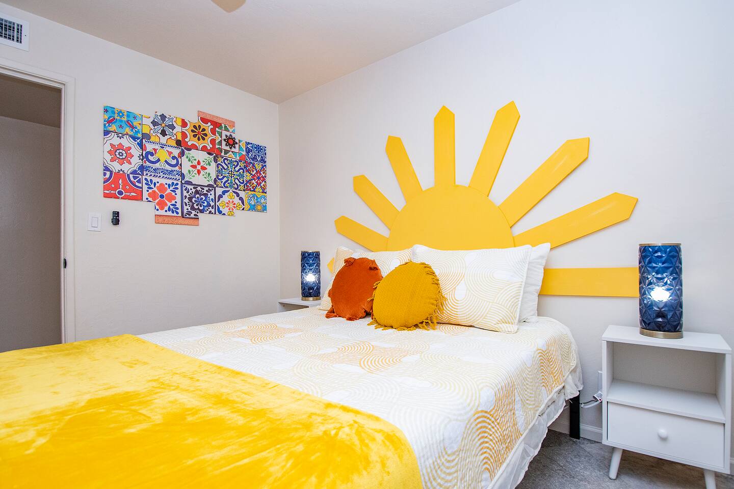 One-of-a-kind single-story 5 bedroom house on the west side of Tucson. Features heated pool* & spa, outdoor ramada, wraparound covered porch, and an accommodating spacious interior. Bring the family, or a group of friends/co-workers. There's ample space for both work and play in this vibrant, colorful house, boasting easy proximity to a wide variety of Tucson destinations and attractions.