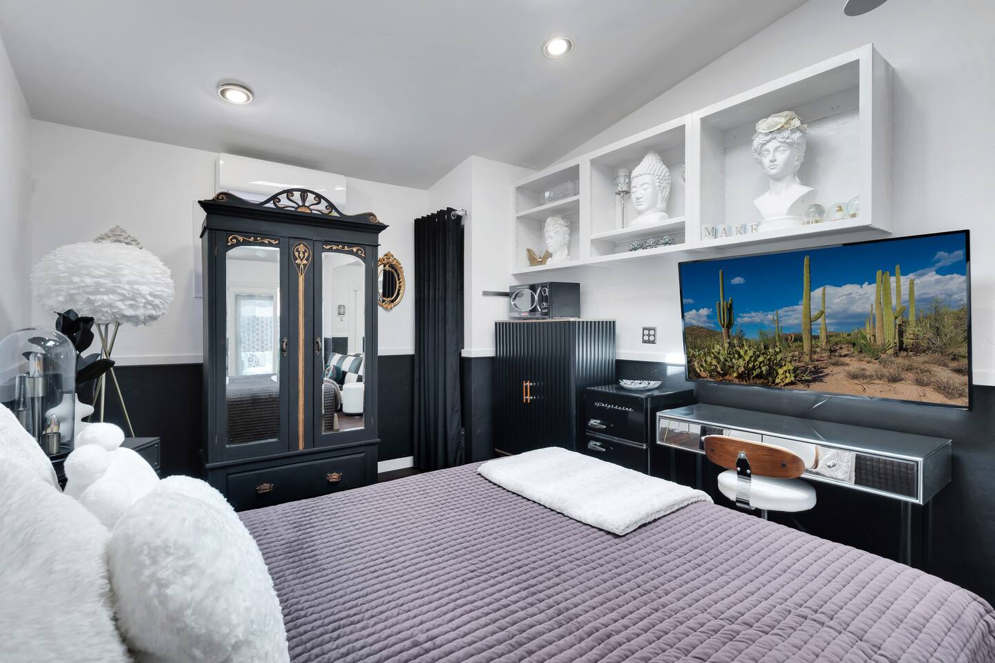 Welcome to our designer studio where comfort meets style in this charming studio with en suite bathroom close to all the action of West University and downtown Tucson. Kick back and relax on the patio, and rest well in the comfy queen bed after a day downtown or on campus! This studio shares a wall with a second one bedroom unit, which can be booked in combo check out our other listing! Also please note that there is a full time tenant in the main house.
