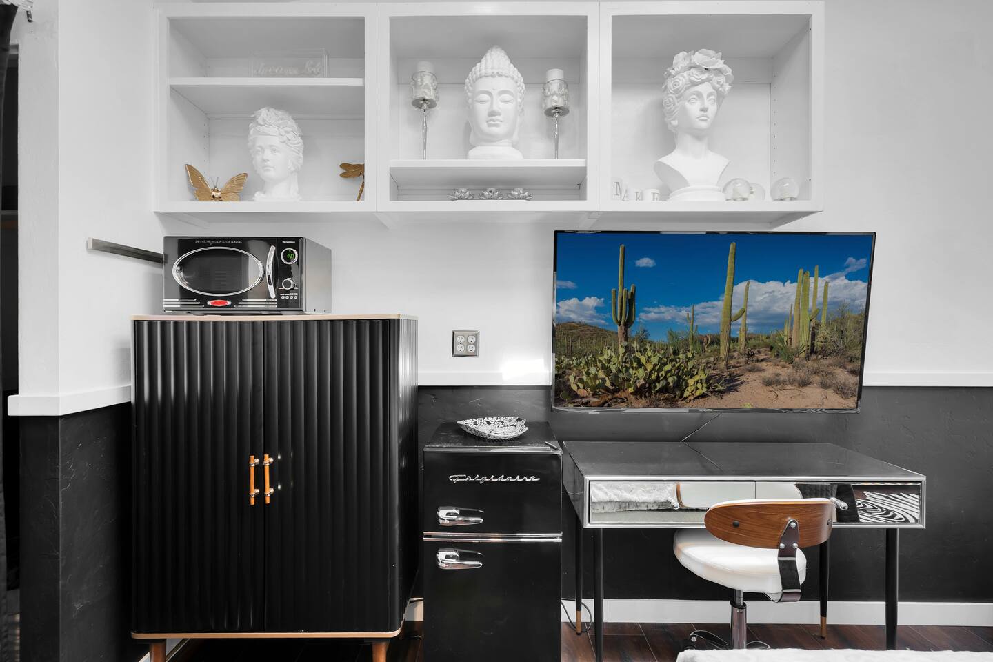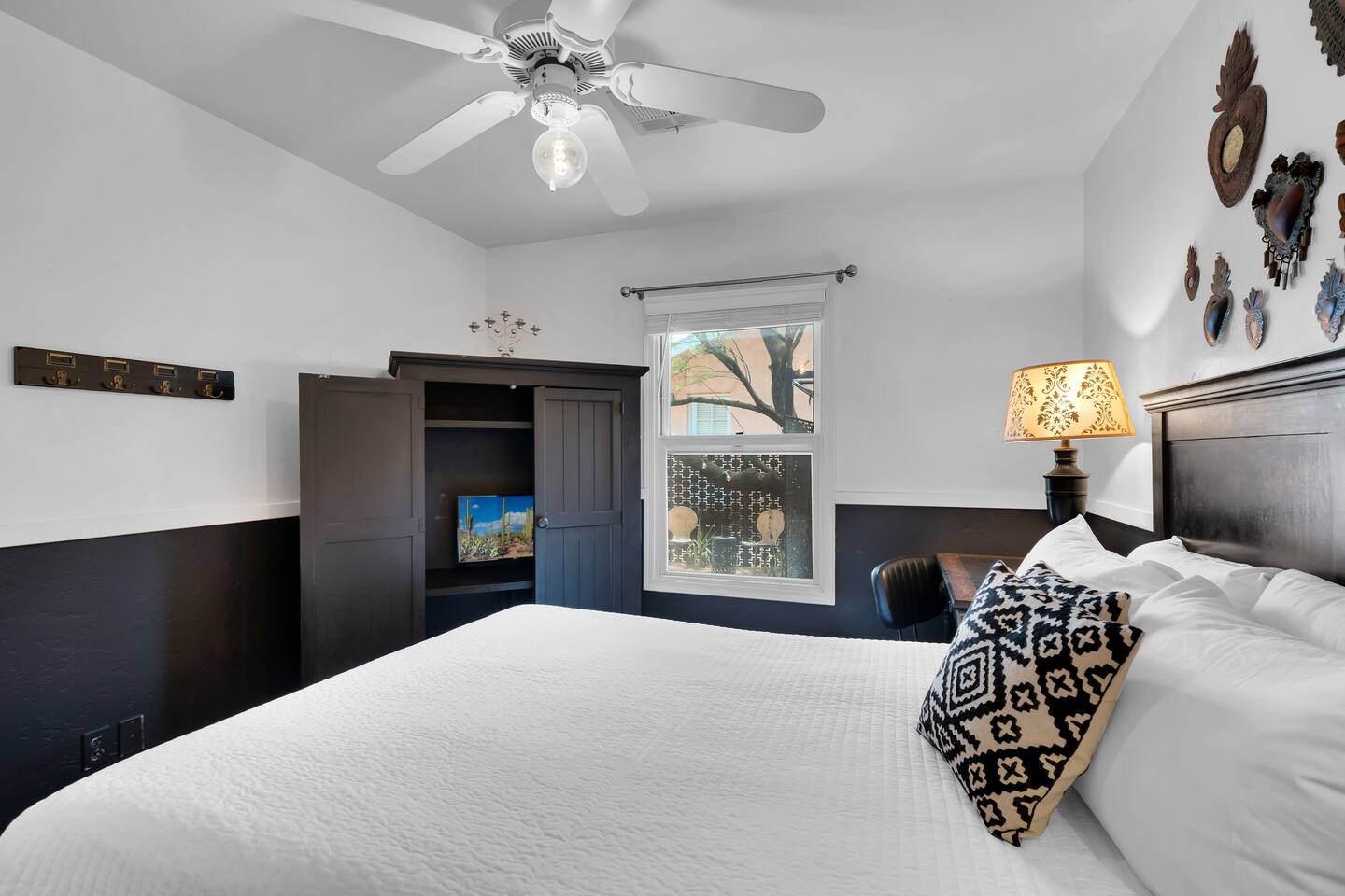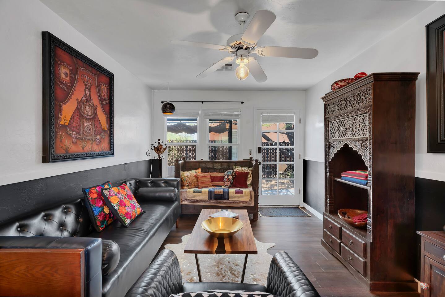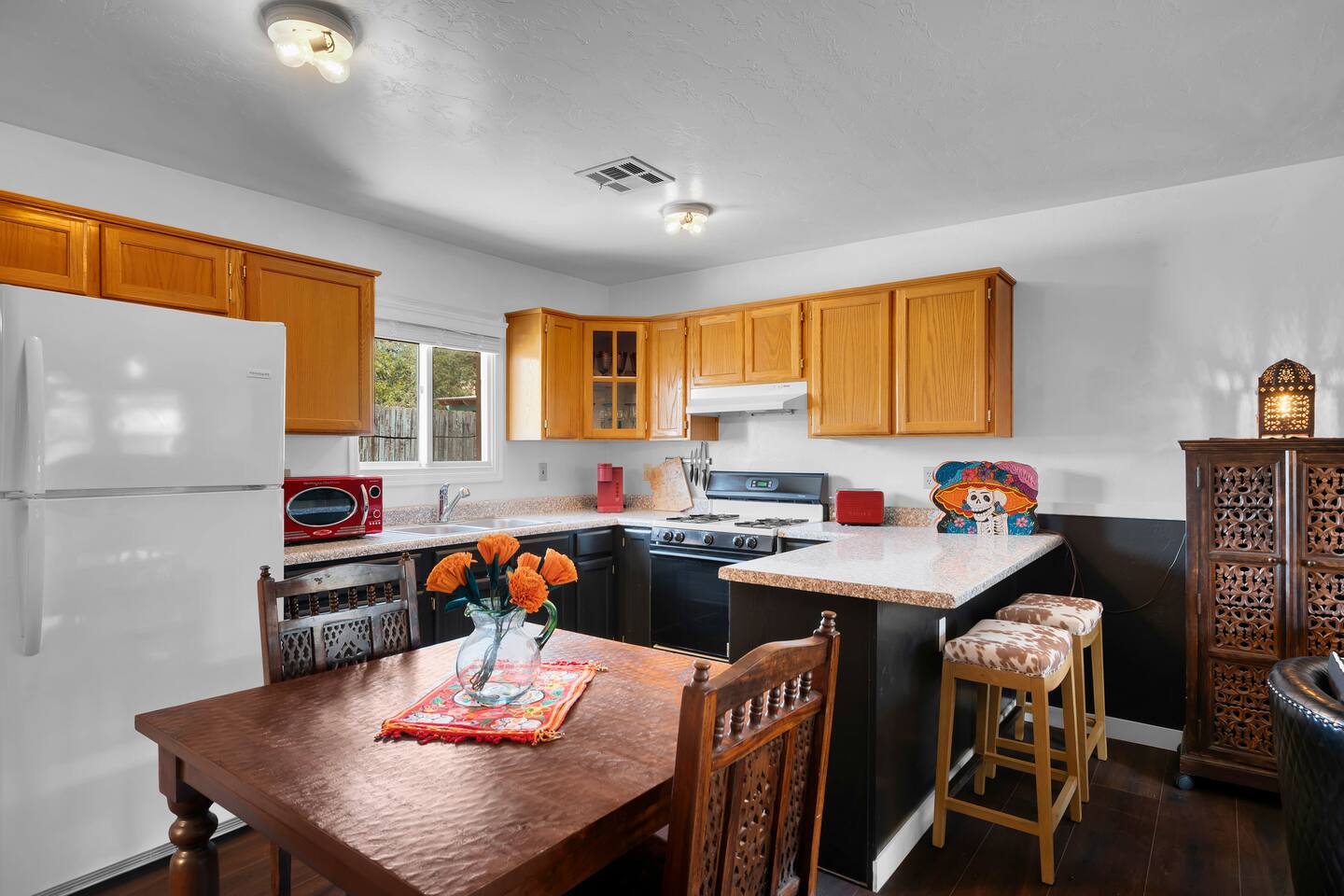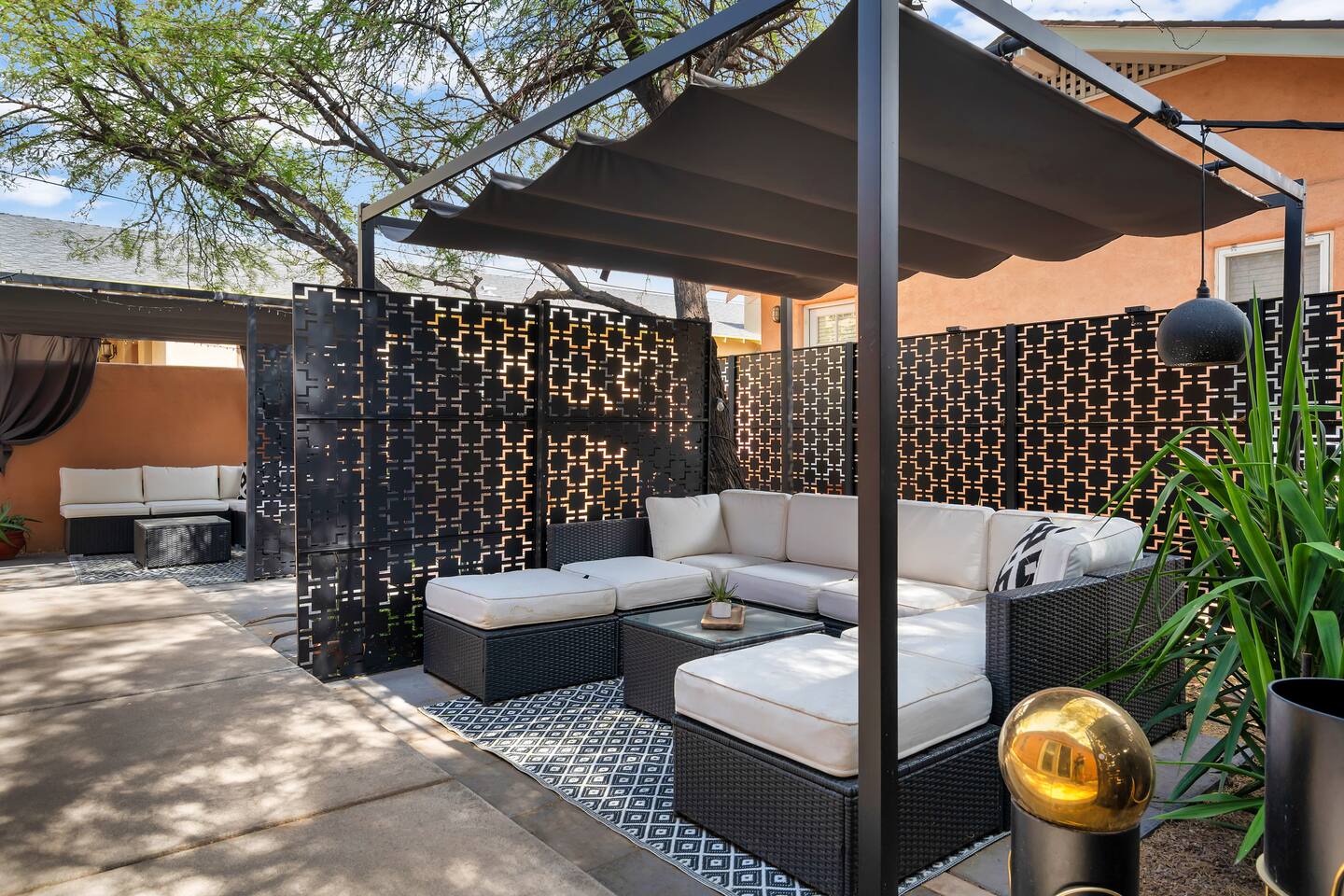 Discover this one-of-a-kind haven: a bold one-bedroom bungalow plus a stylish studio, perfect for creative groups. Featuring curated original art and vibrant colors, this hip retreat offers a private lounge area for morning coffee or evening cocktails. You’re center stage for Tucson’s best—just blocks from the U of A, Fourth Avenue nightlife, and downtown dining. Please note: there is a full-time tenant in the main house.